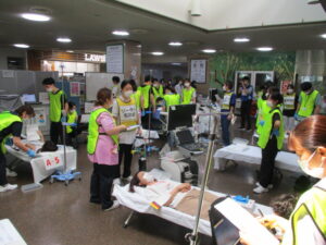 訓練には職員約150名に加え、学生ボランティア、仙台市消防局、県外のDMATなどが参加し、実践的な対応を通じて課題や改善点を共有しました。