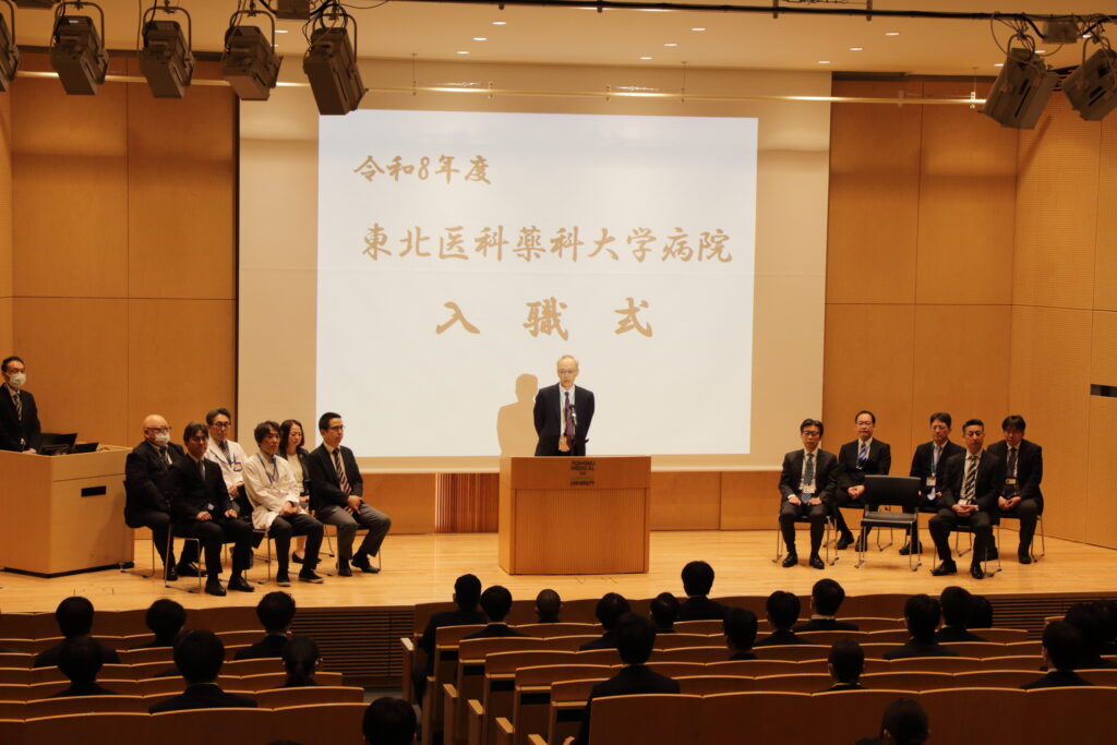 入職式では川本俊輔病院長より、「質の高い医療を提供するために必要なものは人材。それぞれが高い意識をもって努めてほしい」と新入職員へのメッセージが贈られました。